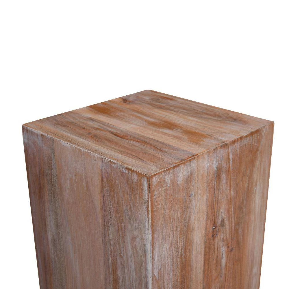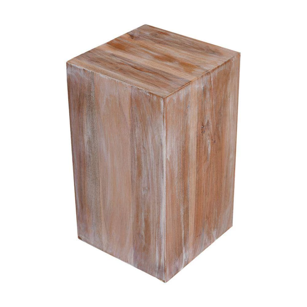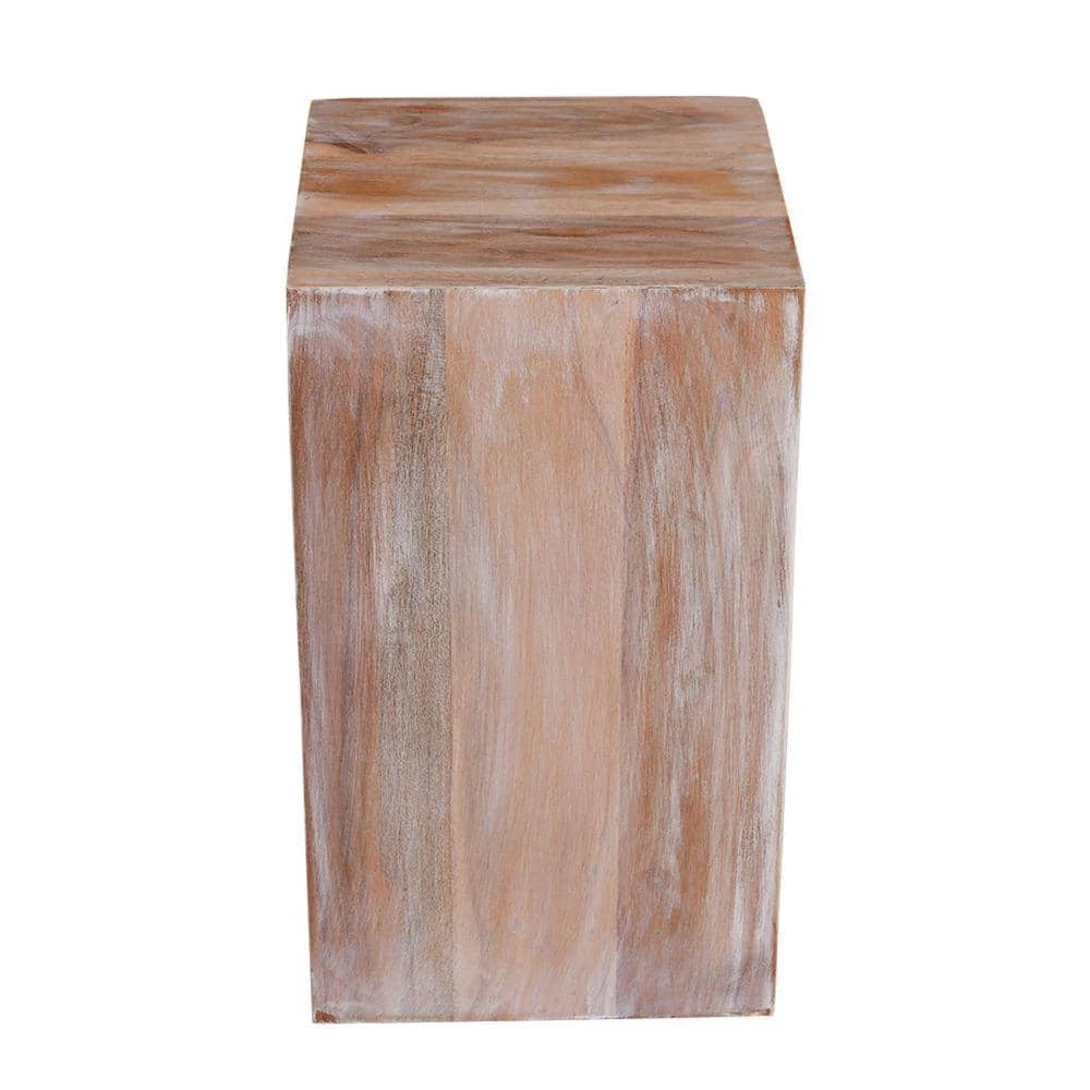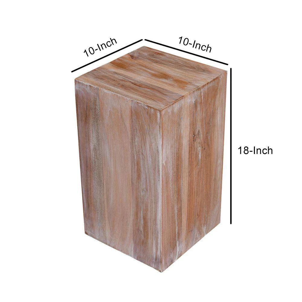 Far from ordinary, this industrial style accent side end table transforms your living space with its unique aesthetics and minimalistic design. Replicating a distressed look, the side table is crafted artistically from acacia wood. Featuring a modern solid block design, it is finished in distressed brown and comes in a simple squared shape. Just set it beside your couch or bedside for an instantly perfect addition to keep your essential items within arms reach. Due to the handcrafted nature of the product, there may be variation in color, finish, wood grain and knots.