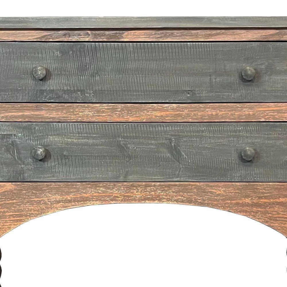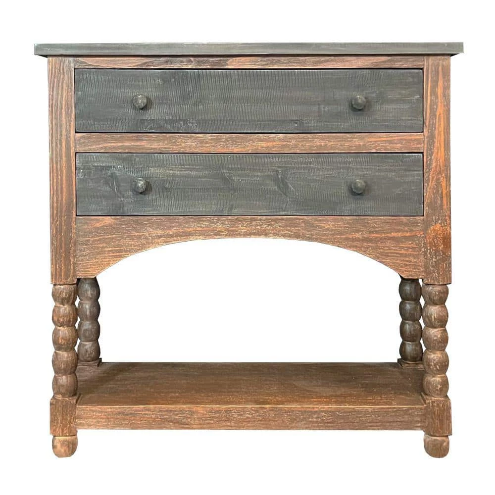 A perfect blend of style and sophistication, this transitional style inspired Console Table is sure to amplify the aesthetics of your interior by its mere presence. Incorporated with 2 smooth gliding drawers to hide clutter and an open bottom shelf, it comes with a wide tabletop to flaunt showpieces, vases, valuable collectibles and prized possessions. Constructed sturdily from the solid wood frame for lasting durability, the dual tone finish in the hues of hazelnut brown and gray complement its look. The aesthetically pleasing grain details impart a nature inspired appeal to it while the beaded legs offer it with utmost stability. Exhibiting a charming vibe, this piece of furniture is sure to add a remarkable flair to any kind of interior.