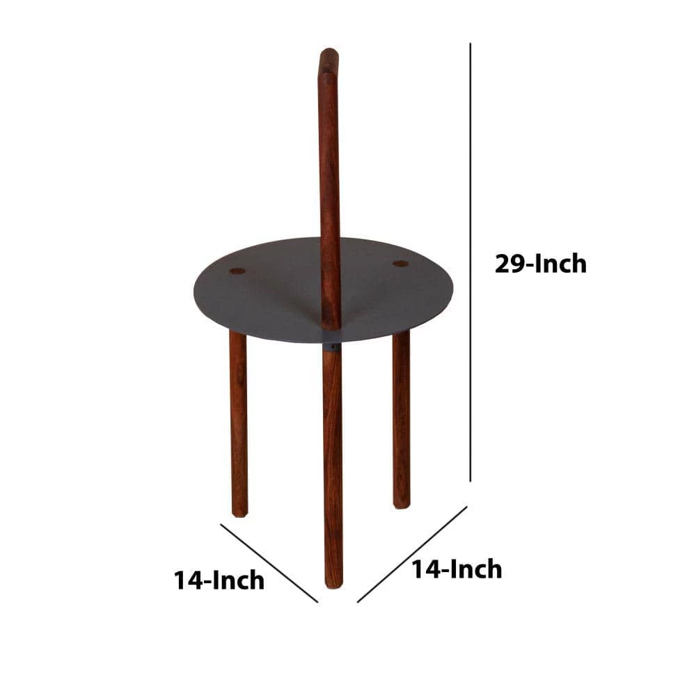 Eclectic style meets fine craftsmanship with this sophisticated End Table from the Peter Collection. Featuring a round tabletop and replicated wood grain details, it is supported on knock down tubular legs with a uniquely designed X shape base. The aesthetically pleasing butcher block design imparts an astonishing flair to it. Handcrafted from the amalgam of acacia wood and steel frame for lasting durability, the dual tone finish in warm brown and striking black tone compliments the overall structure. A perfect addition to your interior, it offers a sophisticated abode to flaunt your vases, showpieces, valuable collectibles and prized possessions.