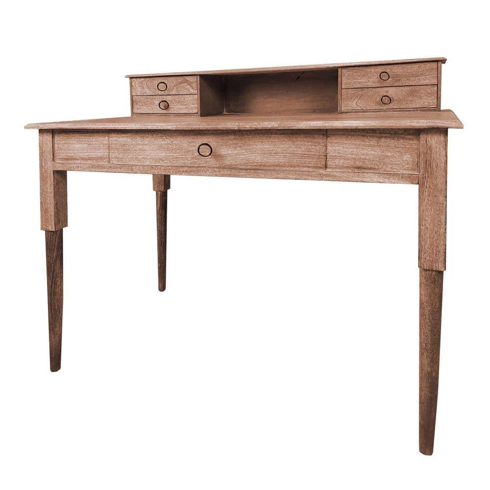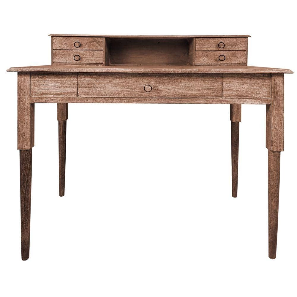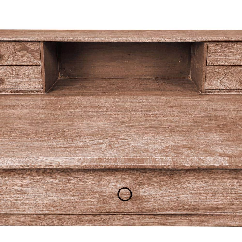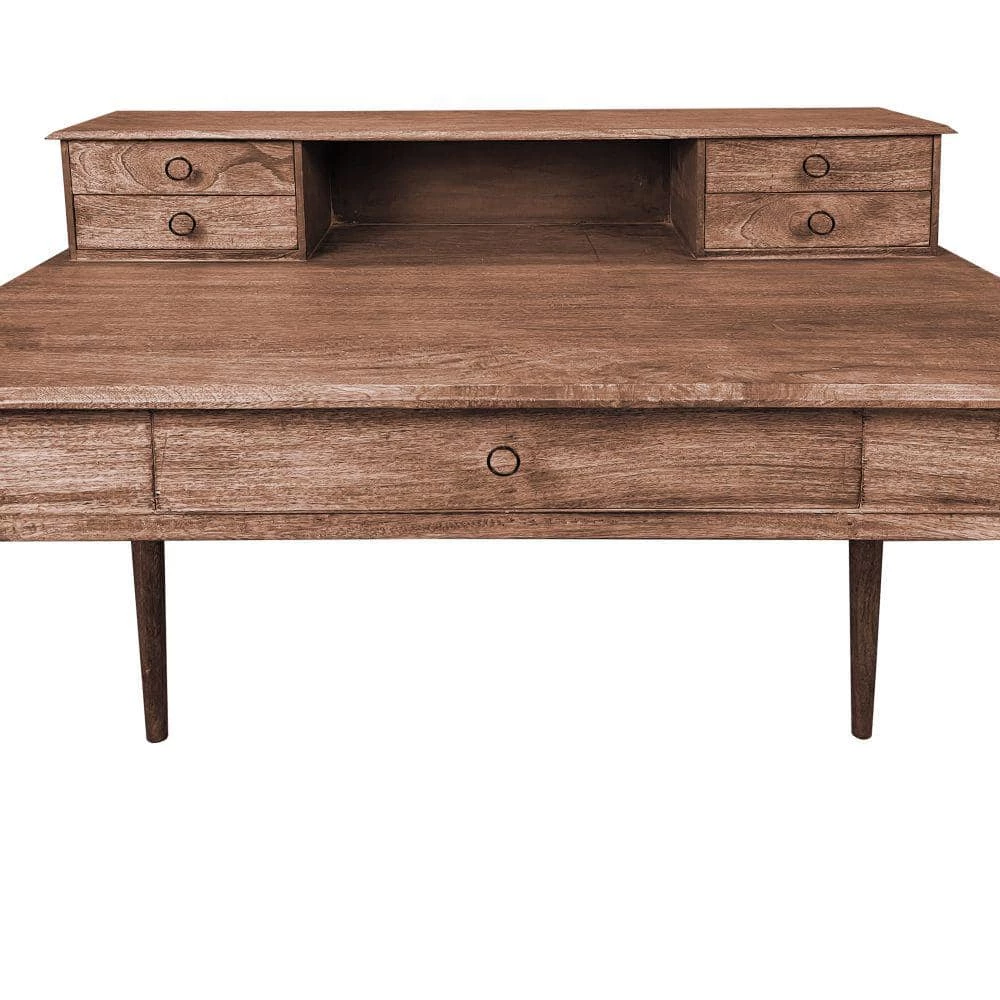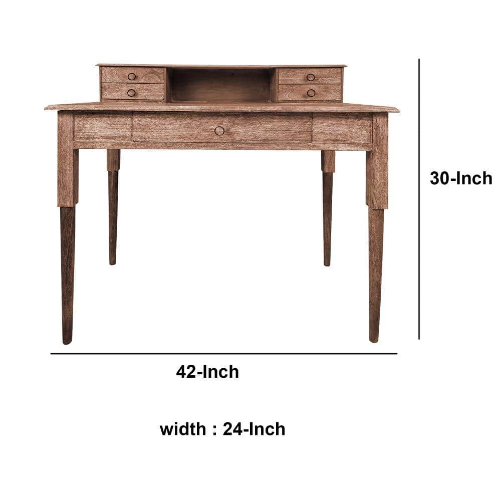A perfect blend of farmhouse style and modern craftsmanship, this study table is sure to add a sense of rugged, homespun charm to any interior in your house. It has five smooth gliding drawers, perfect for keeping your workspace clutter free. It is handcrafted from a combination of mango and composite wood, sturdy enough to ensure lasting durability all while displaying gorgeous wood grain details. The detachable legs allow for easy transportation when needed. The round metal knobs facilitate easy access to your storage space.