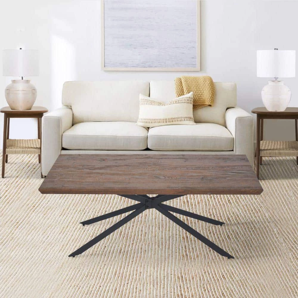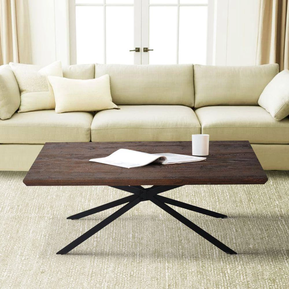 Uniquely designed, this Wooden Coffee Table is sure to add a remarkable charm to the aesthetics of your interior. Featuring a wide rectangular tabletop to render services hassle-free and conveniently, it is supported sturdily on boomerang-inspired legs. Constructed sturdily from the combination of quality MDF and metal frame, the natural brown sonoma accented table top compliments the striking black coated frame. A perfect center table to accentuate your living space, this Coffee Table helps you keep snacking while binge watching your favorite program. Exhibiting a perfect blend of farmhouse and industrial style, this piece of furniture readily blends in to become an integral part of the interior.