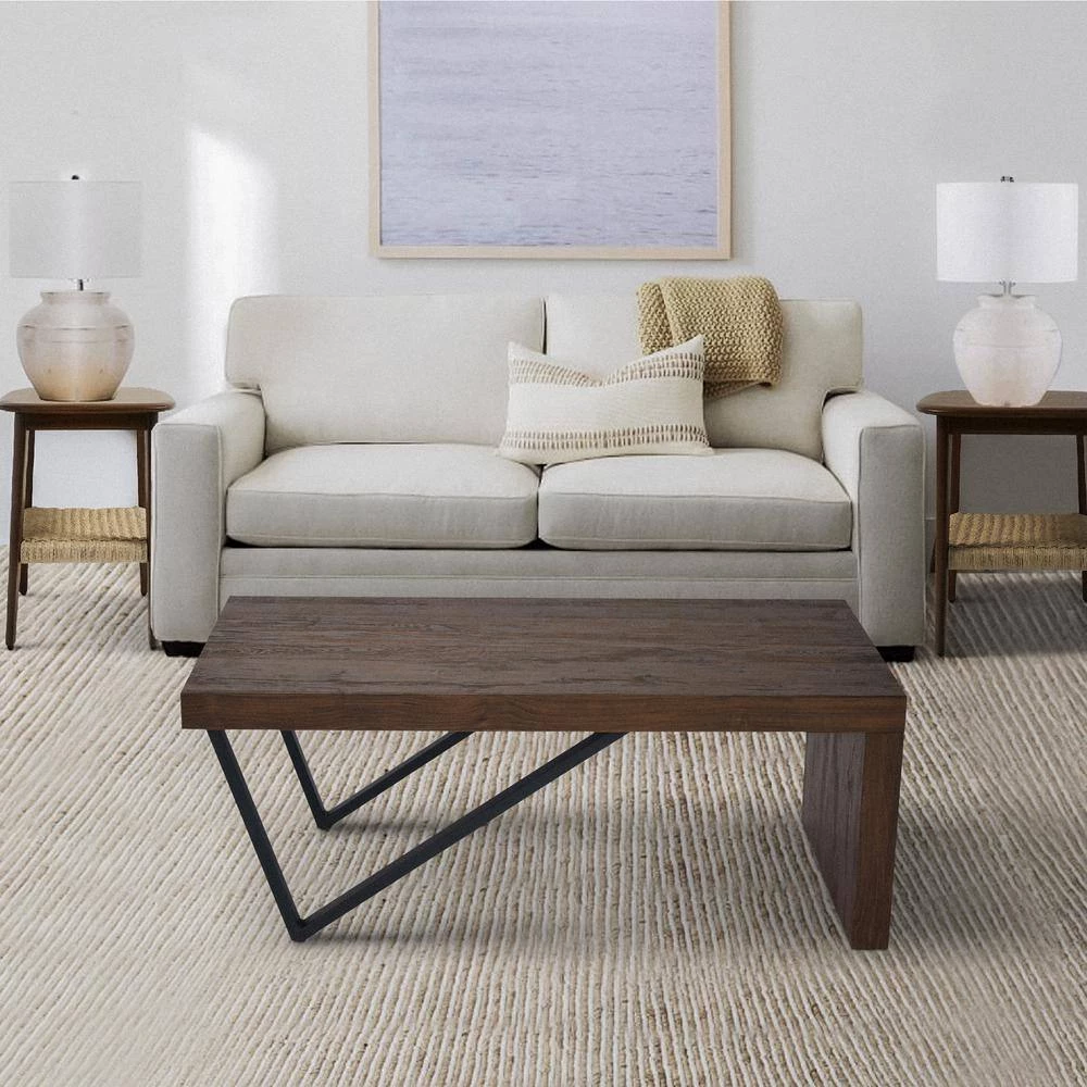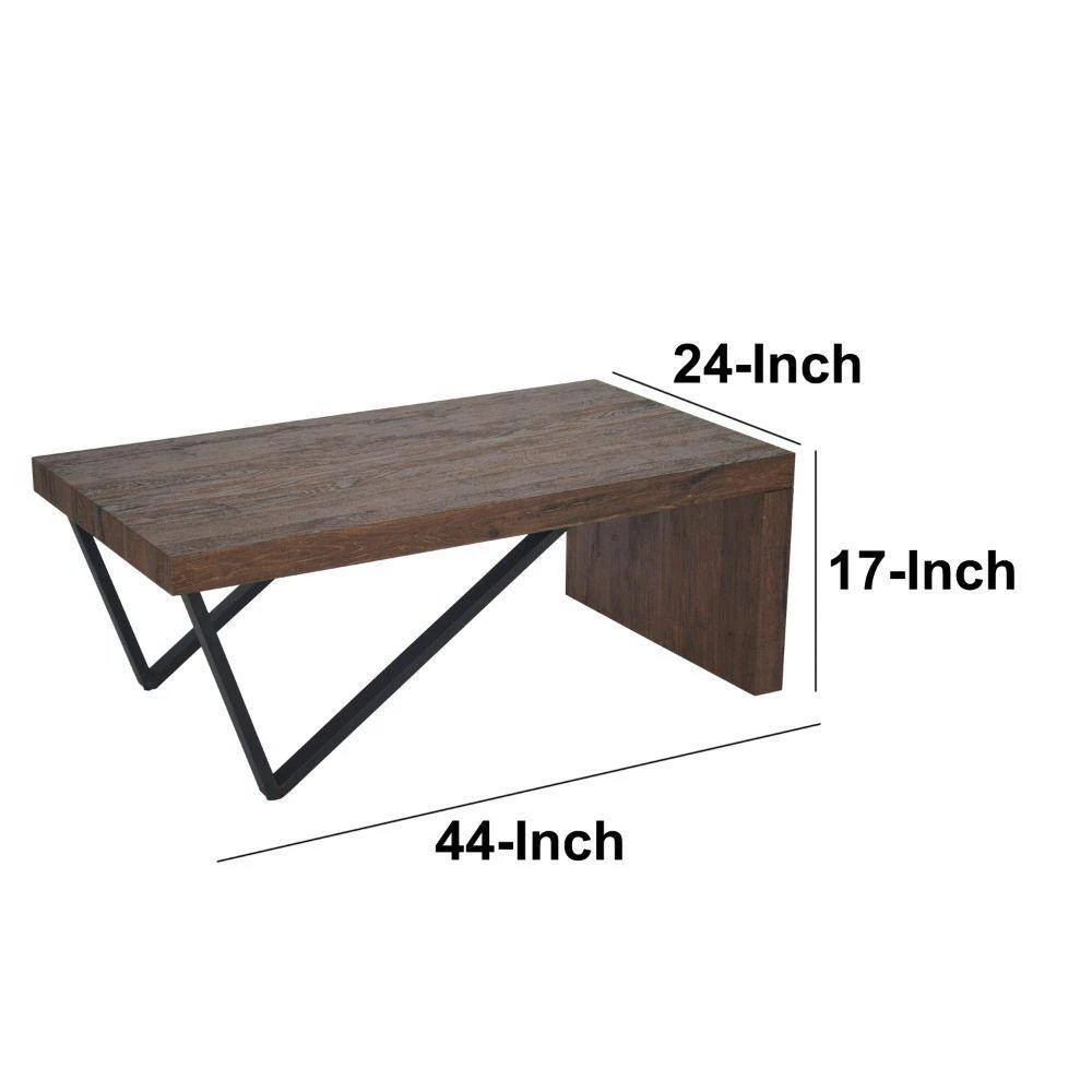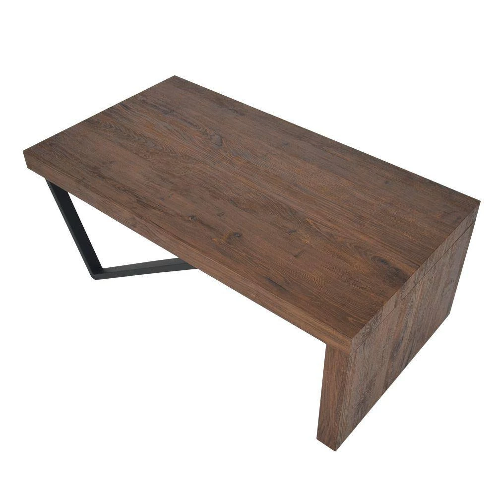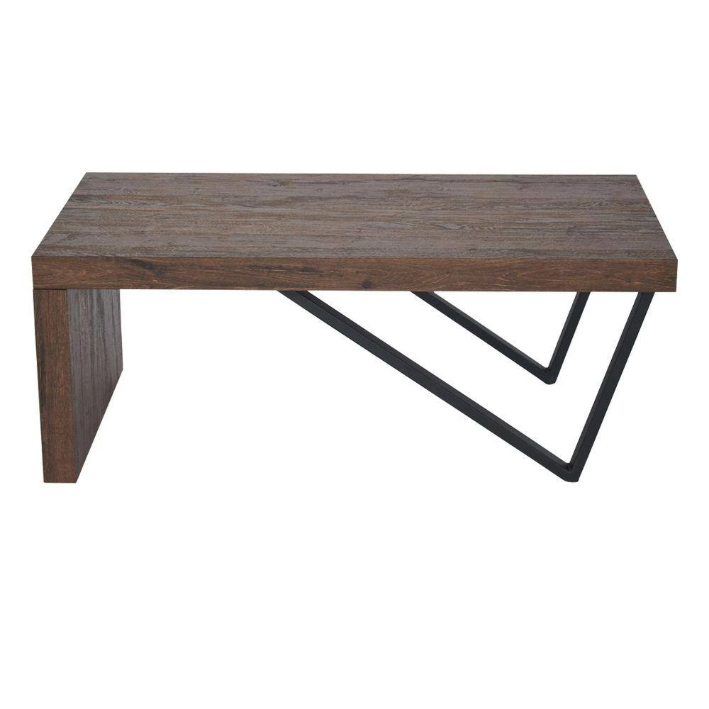 Uniquely designed, this Wooden Coffee Table is sure to add a remarkable charm to the aesthetics of your interior. Featuring a wide rectangular tabletop to render services hassle free and conveniently, it is supported sturdily on V shape legs on one end and panel base on the other for the utmost stability. Constructed sturdily from the combination of quality MDF and metal frame, the natural brown sonoma accented tabletop compliments the striking black coated frame. A perfect center table to accentuate your living space, this Coffee Table helps you keep snacking while binge watching your favorite program. Exhibiting a perfect blend of farmhouse and industrial style, this piece of furniture readily blends in to become an integral part of the interior.