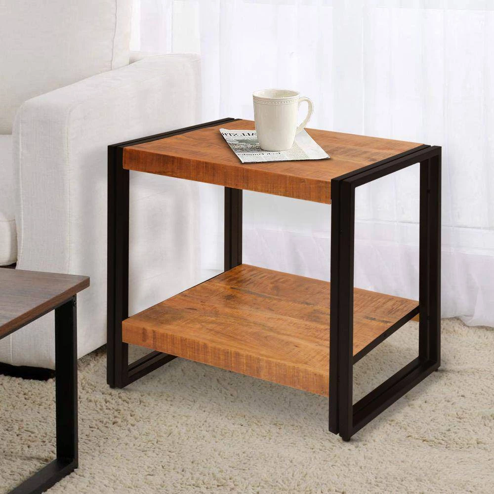 Exquisitely crafted, this farmhouse style inspired Side Table is sure to add a riveting flair to the aesthetics of your interior. Incorporated with a wide tabletop and an open compartment, it is supported on a reinforced dual sled base. Constructed sturdily from the combination of mango wood and Iron frame for lasting durability, the riveting concoction of oak brown and bronze tone accentuates its overall look. The aesthetically pleasing grain details embellish its nature inspired appeal. The spacious storage option allows you to flaunt showpieces, vases, valuable collectibles and prized possessions. Even though it is inspired by farmhouse style, it is sure to intermingle with a multitude of decor settings.