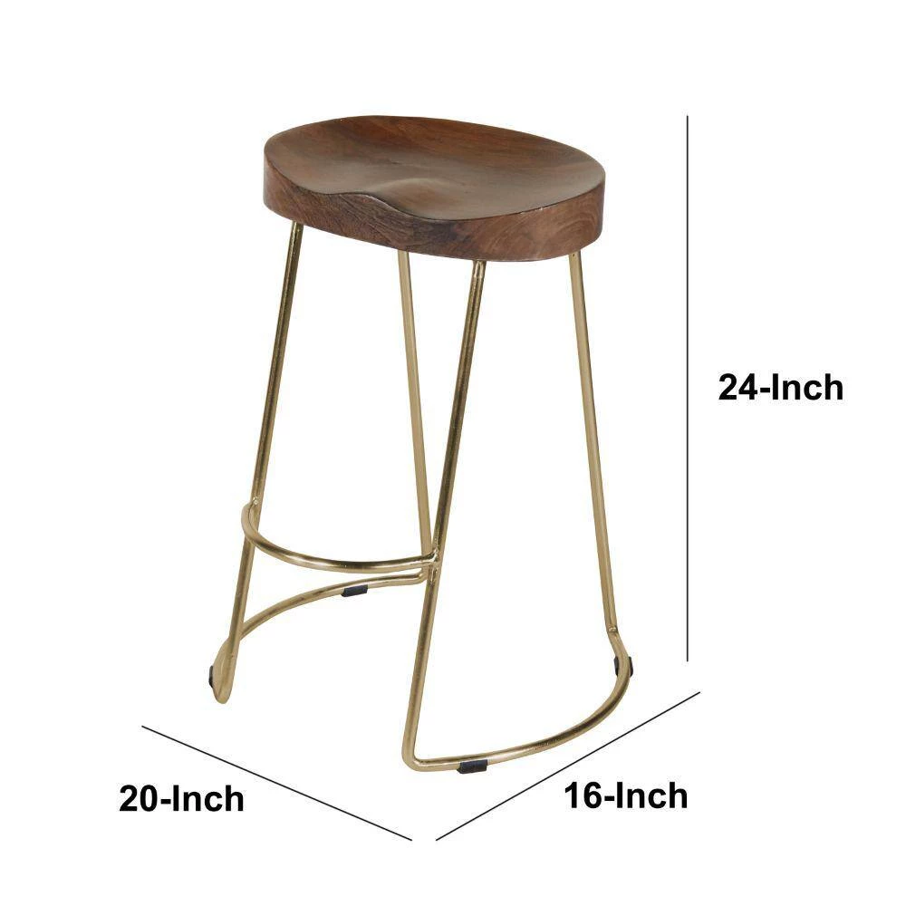 A perfect blend of farmhouse and industrial style, this Barstool is sure to add a riveting flair to the aesthetics of your interior. Be it your kitchen counter or your dining space, this striking piece of furniture can readily blend in with any space. Constructed sturdily from the combination of mango wood and Iron frame for a lasting durability, the natural brown accented saddle seat compliments the gold coated frame. It is bolstered with stretchers that double as footrest. It can be placed along with the bar height table to create a charming modular set. Exuding an aesthetically pleasing vibe with the natural grain details, the Stool set makes an enthralling addition to your existing decor setting without compromising the integrity of the interior.