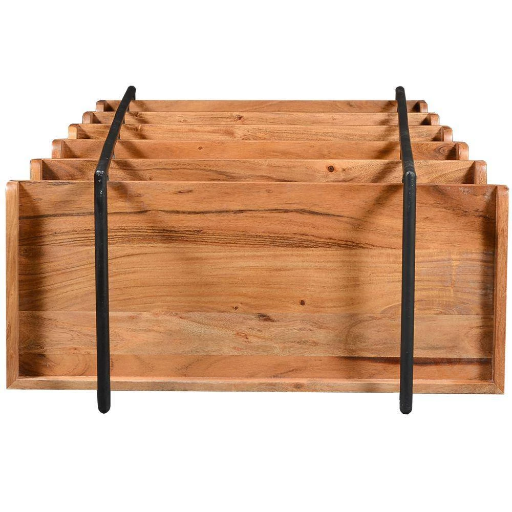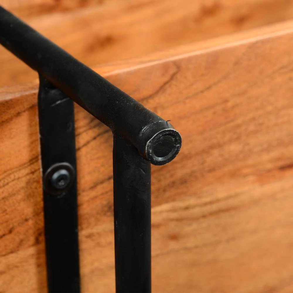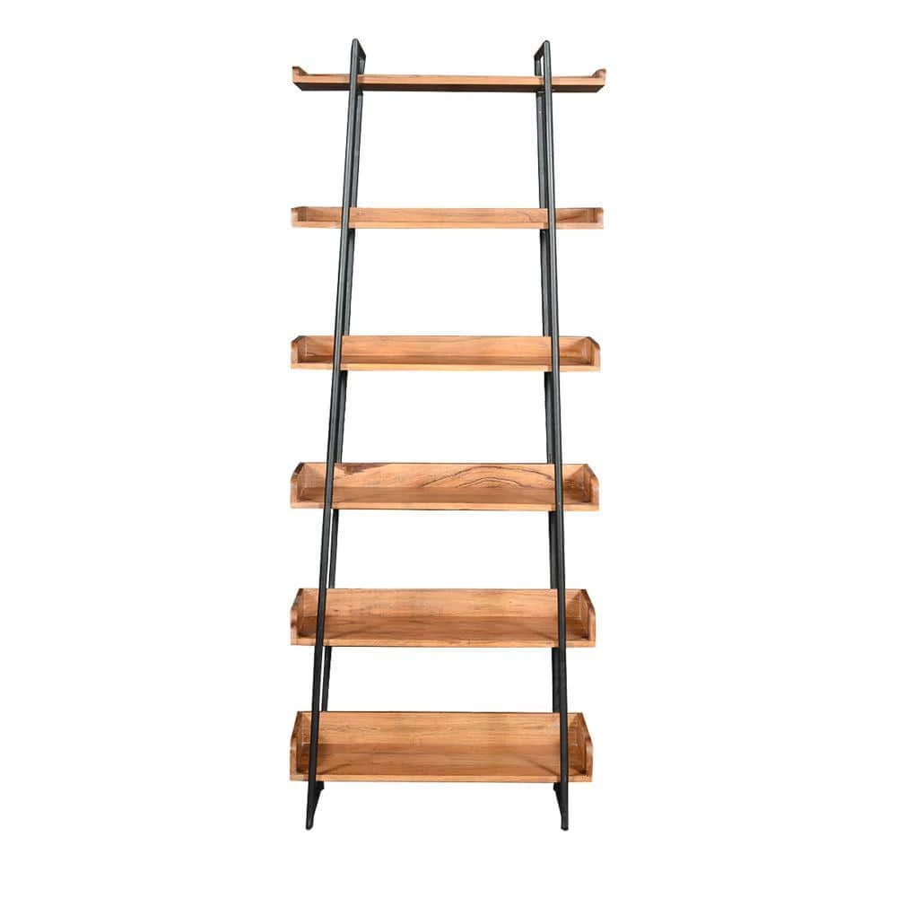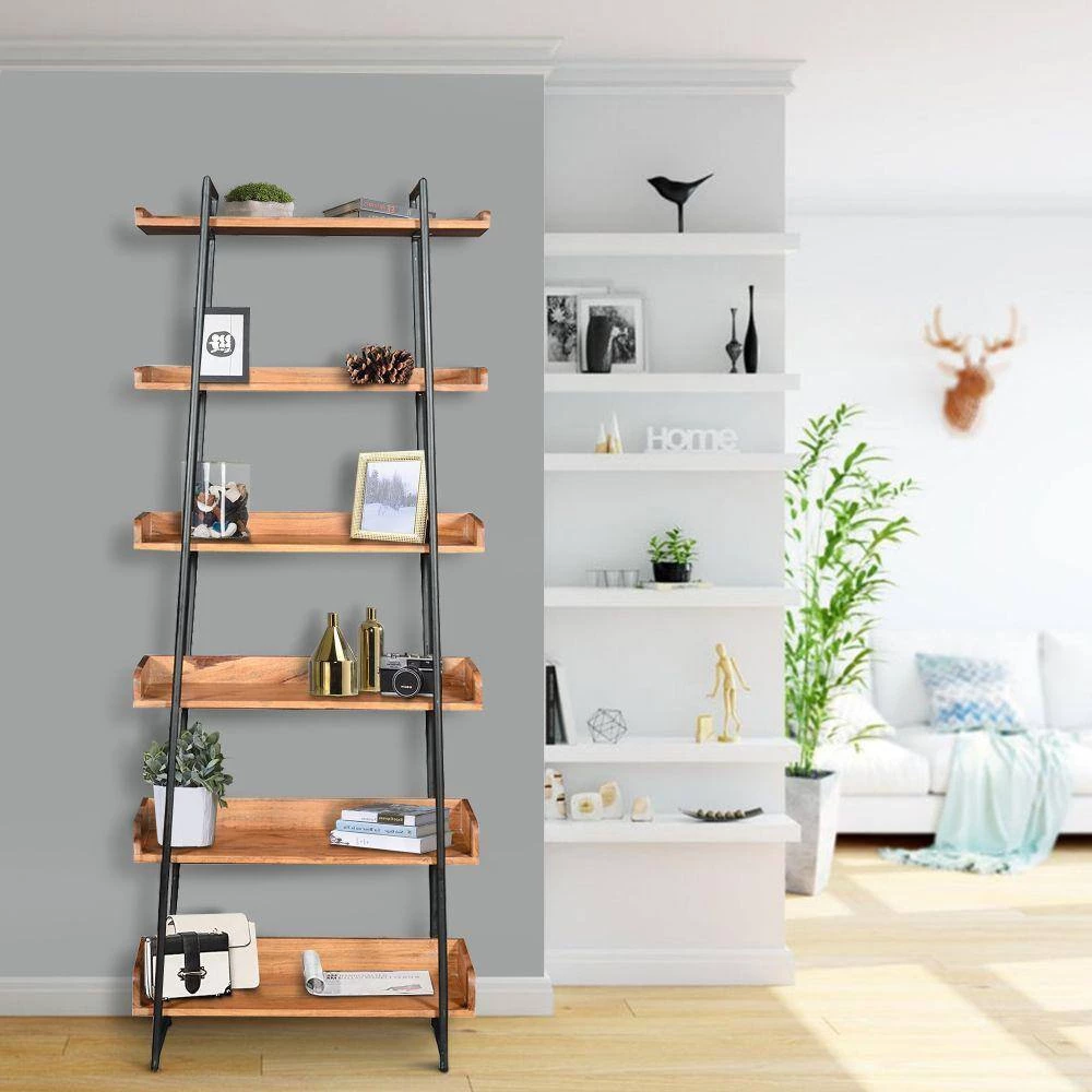 A perfect blend of farmhouse style and industrial style, this Ladder Bookshelf which comes with 6 tier storage space will serve as a sophisticated abode for all your books and exotic decor items. This bookcase is constructed sturdily from the combination of acacia wood and metal frame, it is accented with brown and striking black color finish. Incorporated with aesthetically visible grain details which add an enchanting vibe to it, this coveted piece of furniture can intermingle with any decor setting and the mere presence of it will enhance the overall aesthetics of your place.