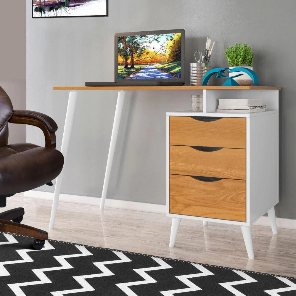 If you are vacillated by the thought of choosing a perfect Office Computer Desk then this piece of furniture conjoined with a file cabinet will be a perfect addition to your office. Constructed from particle wood frame. It is accented in the hues of white and brown.