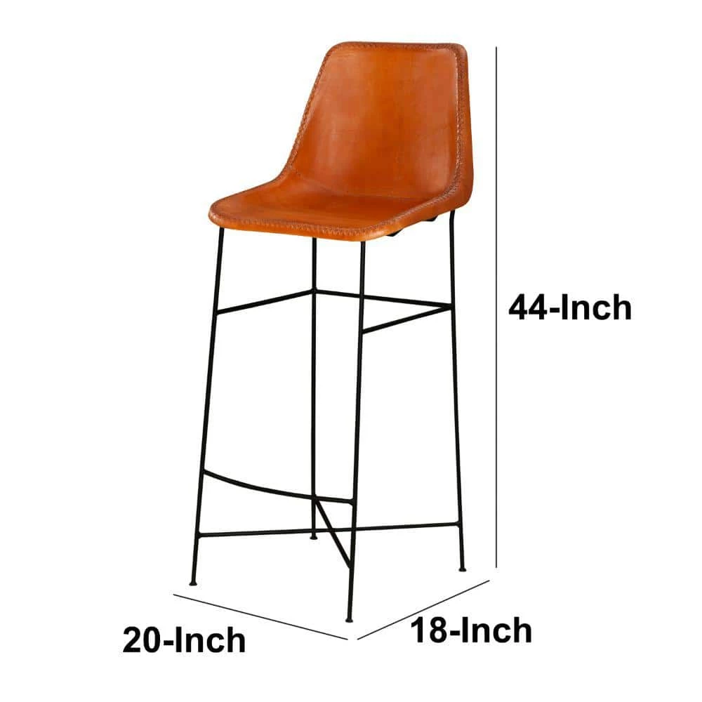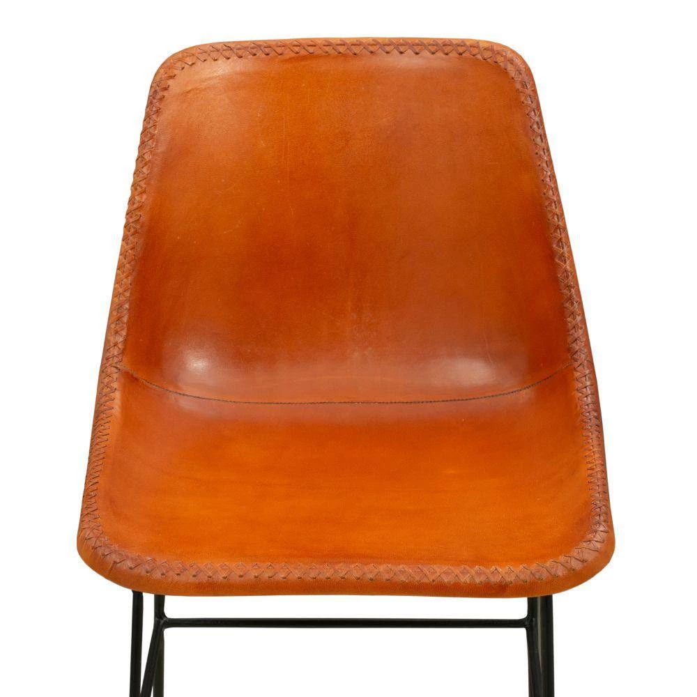 Sophistication meets industrial style with this exquisitely designed Bar Chair. Featuring a padded seat and curved cushioned backrest for lumbar support, it is supported on tubular legs with a uniquely designed X shape base. Constructed from the iron frame for lasting durability, the tan brown tone genuine leather upholstery accentuates the black powder-coated frame. Bolstered with stretchers that double as footrest, this sleek frame Bar Chair is sure to add a riveting flair to the aesthetics of any kind of interior. Apart from offering a sophisticated seating in the bar space, it can also be used in counter top dining.