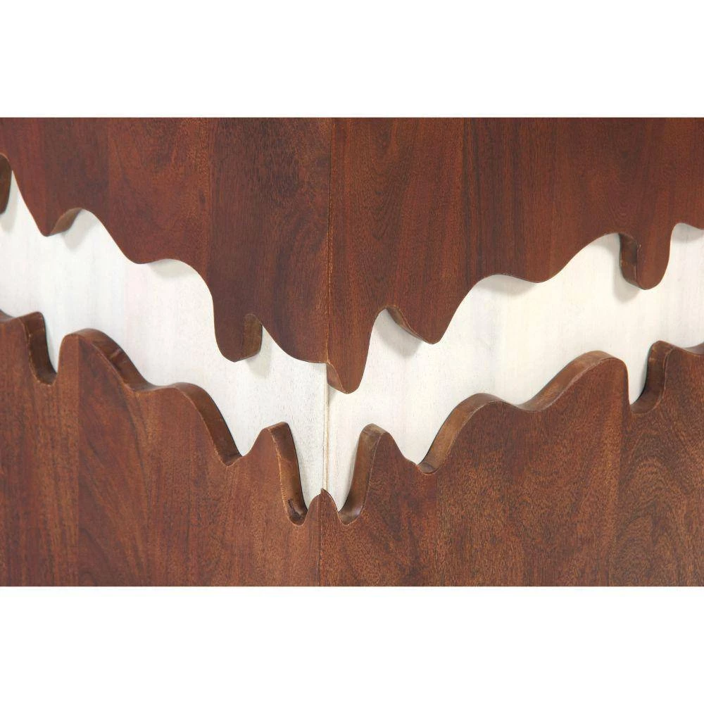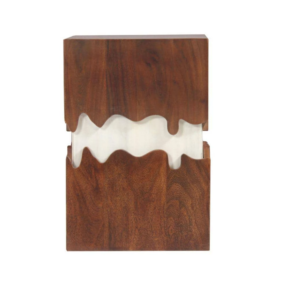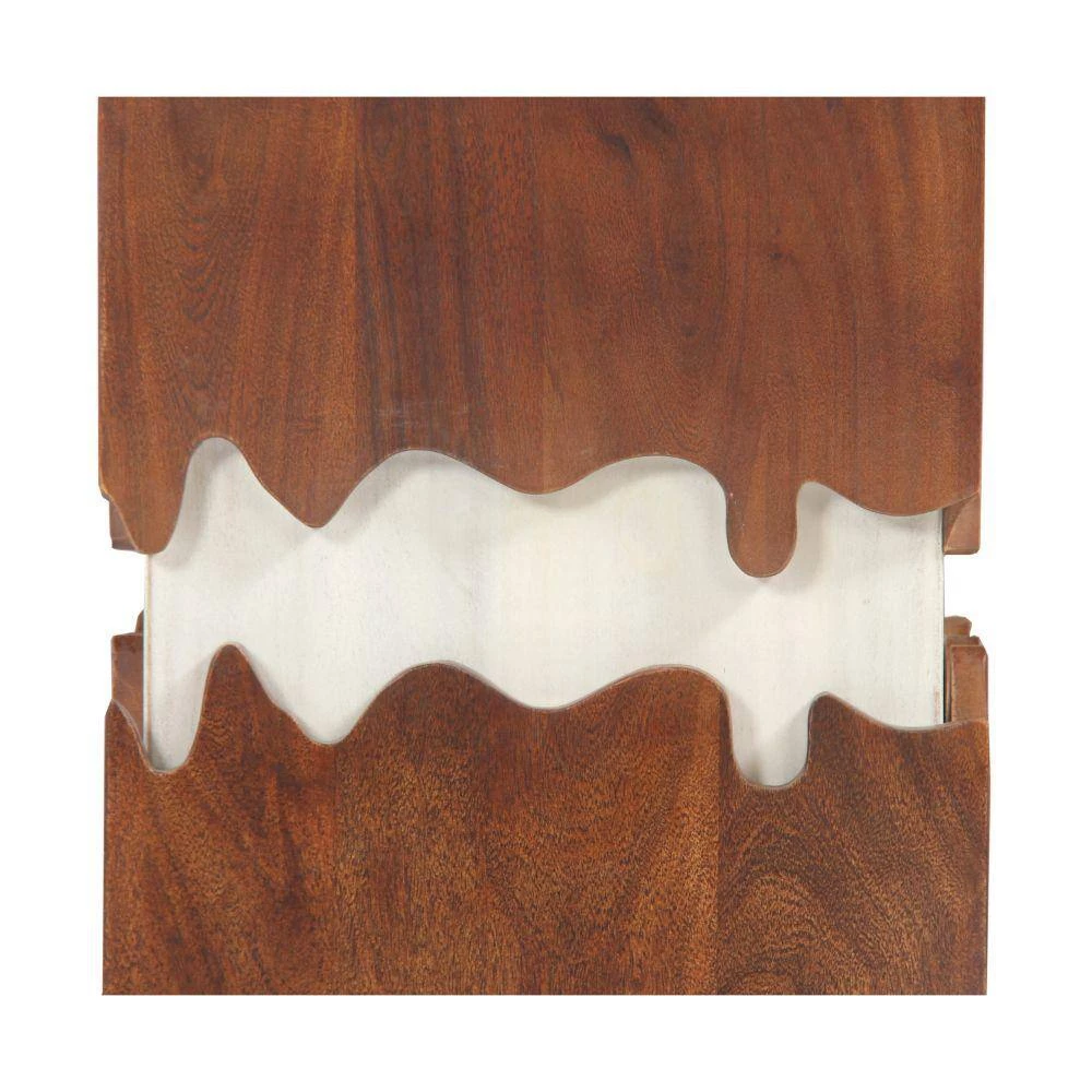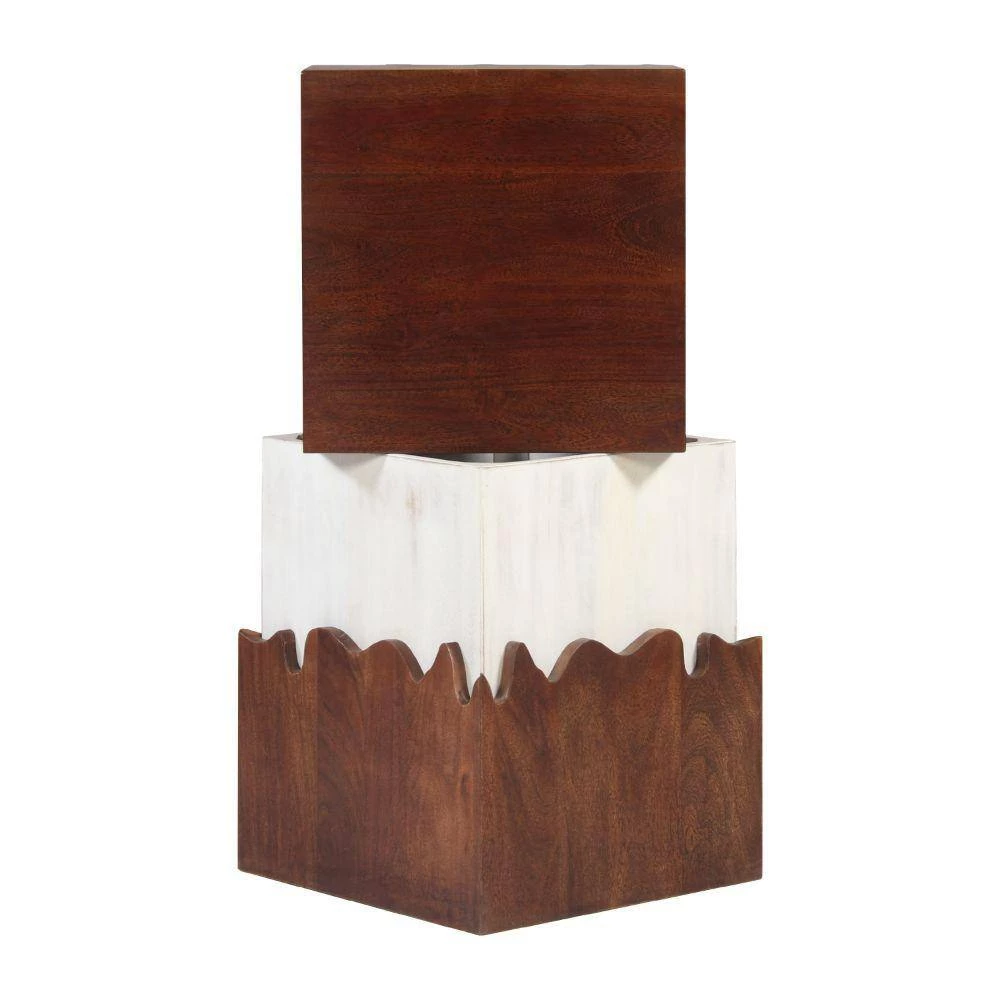 Quality craftsmanship meets uniquely eye catching design with this exquisite side end table. Featuring a square tabletop to place decorations and living room essential, this piece aesthetically pleasing grain details that impart a rustic yet modern flair to your living room or lounging space. Constructed sturdily from a combination of acacia and mango wood for lasting durability, the contrasting dark brown and white tone finish exudes a striking aura of both contemporary artistry and and naturalistic, rugged appeal.