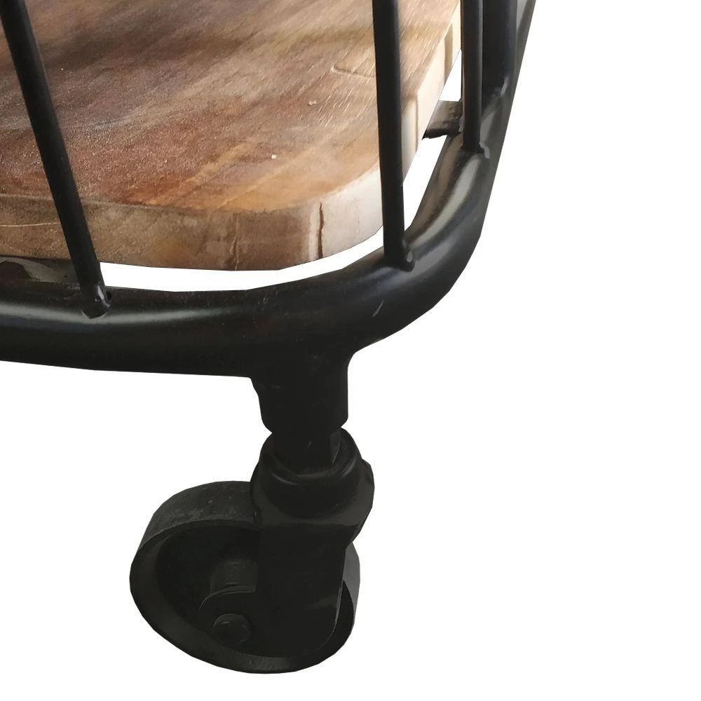 Bring this industrial style bar cart home to make your serving easy while enjoying everything at your reach. The sturdily constructed tubular metal frame provides great support to the wooden top and 2 shelves, featuring natural wood grains that add aesthetics. It comes with 2 side handles that offer easy carrying while the grid design guard rail support protects anything from falling. It features a wine storage rack that holds 6 bottles and lets you display you are fine wine selection.