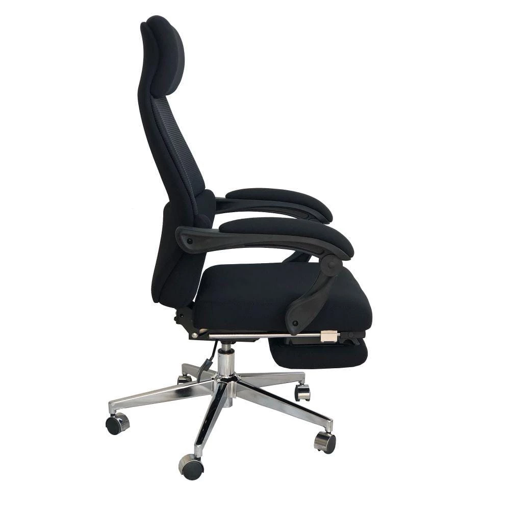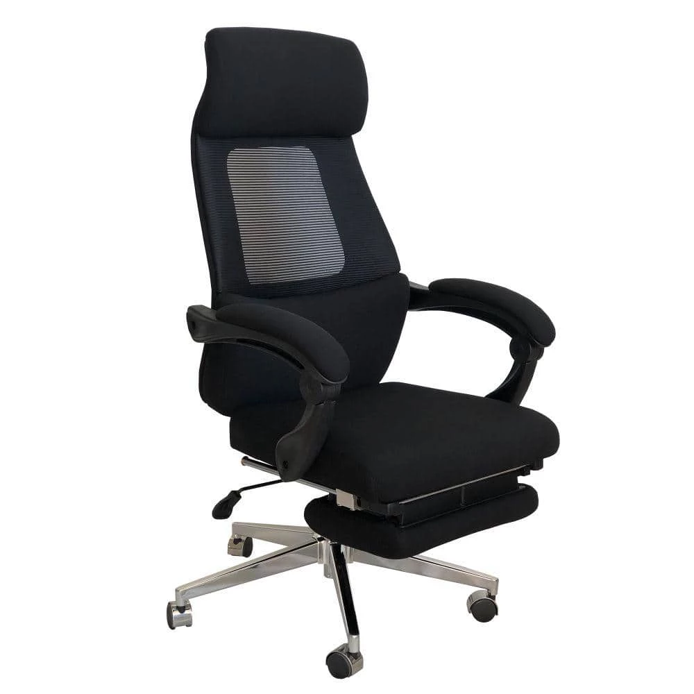 A bit of comfort, a bit of style, this contemporary style Adjustable Office Chair will be a perfect addition to your office or study space. Incorporated with a padded seat and mesh back with multi position lock mechanism, this piece of furniture is constructed from the combination of plywood and metal. The distinguishing yet appealing black color finish with chrome tone provides a complimenting and a ravishing touch to it. The 360° swivel and gas lift mechanism will ensure a greater degree of comfort while balancing your workload which sometimes becomes excruciating. It also comes with a seat height adjustability feature so that you can adjust the height of the seat according to your height and sit comfortably. The footrests offer comfortable lounging whilst doing your office work.