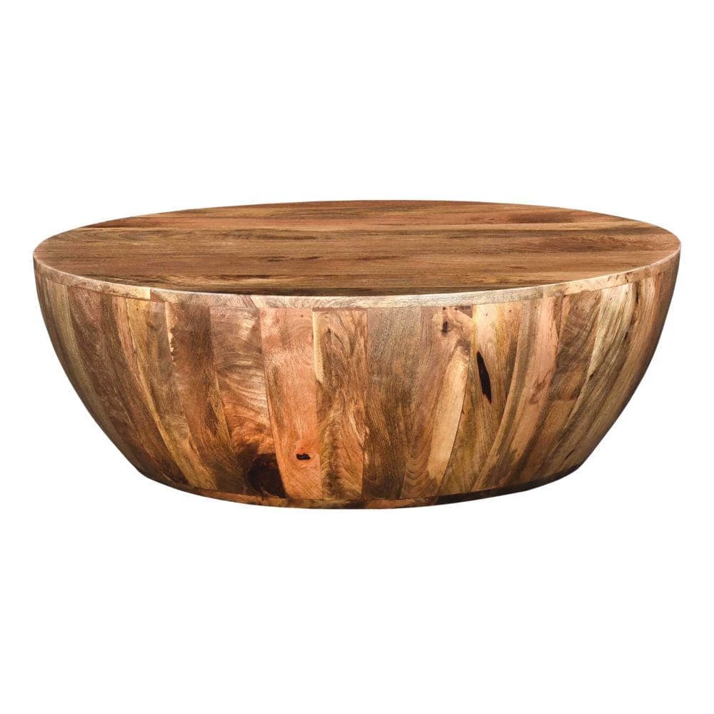 - Elegantly designed table by expert artists in drum shape is made up of mango wood