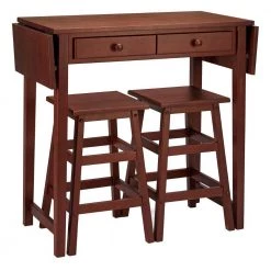 3 Piece Walnut Brown Breakfast Table Set with Double Drop Leaf and Wooden Seating by The Urban Port