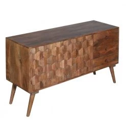Grayish Brown Mango Wood Sideboard Buffet with 4-Doors and Multi Tone Molded Trim by The Urban Port