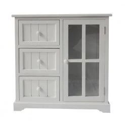White 3-Drawer Wooden Accent Cabinet with Glass Door and Round Knobs by The Urban Port