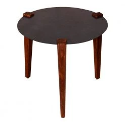 24 in. W Brown and Black Metal Round Top Side End Table with Tapered Legs by The Urban Port