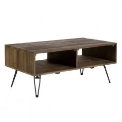 48 In. Brown and Black Wooden Coffee Table with Double Metal Sled Base by The Urban Port