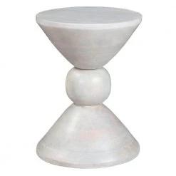 17 in. White Farmhouse End Table with Spool Shape Design and Wooden Body by The Urban Port