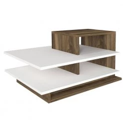 23.6 in. White and Brown Modern Wood Rectangular Coffee Table with Side Shelf by The Urban Port