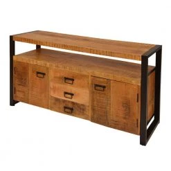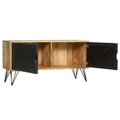 16 in. Brown and Black Mango Wood Media Console TV Stand with 3-Drawers and 2-Door by The Urban Port