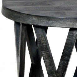 22 in. Dark Gray Farmhouse Style Round Wooden End Table with Airy Design Base by The Urban Port